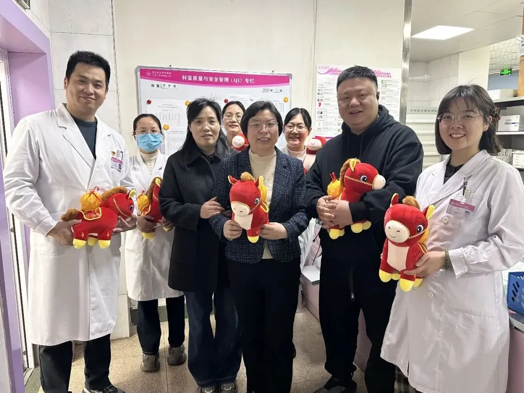 2月14日,时值丙午马年新春佳节来临之际,郑州市妇幼保健院党委书记白文杰携院领导班子及相关职能科室负责人深入临床一线,亲切慰问坚守岗位的医护人员,向大家致以诚挚的新春祝福,并送上寓意昂扬奋进的马年吉祥物,勉励全体医务人员在新的一年里以万马奔腾的气势、一马当先的担当,持续守护健康、传递温暖,为医院高质量发展注入“马力”十足的新动力。