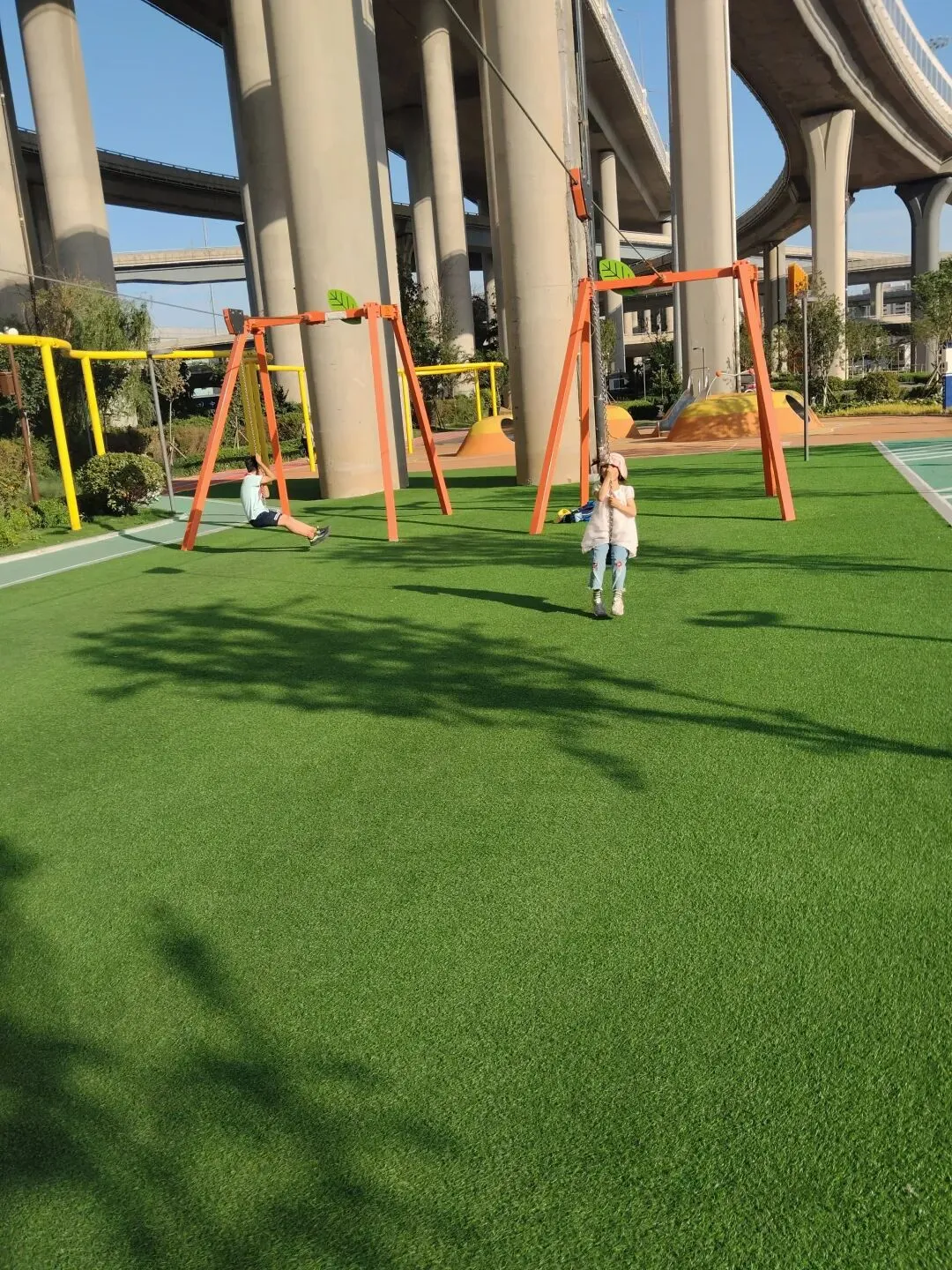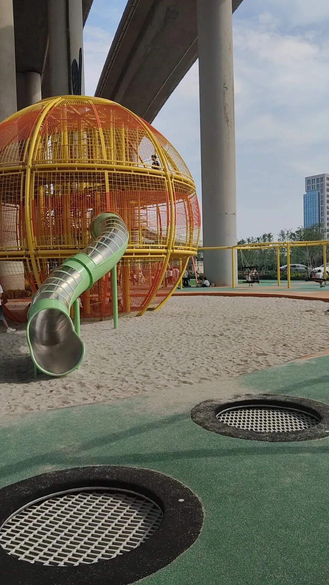 第一次去是偶然路过,看到一片鲜亮的橙色游乐设施若隐若现,俩娃在车上就开始尖叫:“那是什么?我们要去!”