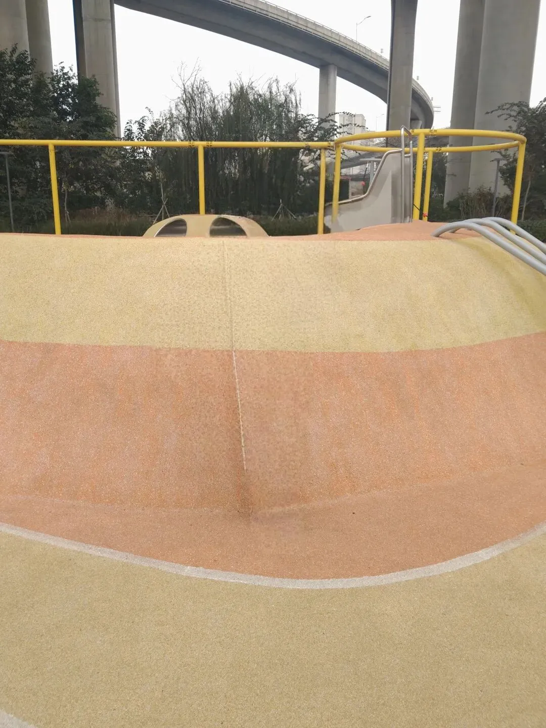 因为是新公园,设施都崭新顺滑,滑起来格外顺畅。我家老大第一次玩的时候还有点怯,抓着把手犹豫了半分钟。老二胆子大,直接冲上去:“哥哥你让开,我先来!”结果滑到一半兴奋得松开一只手挥舞,幸好速度设计得安全,落地后第一句话是:“再来一次!这次我要松两只手!”