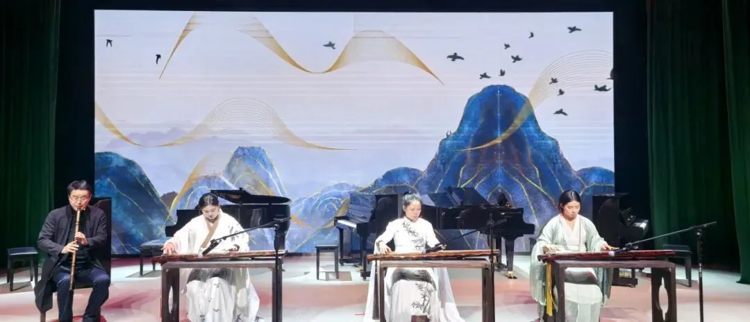 这场名为"乐韵华章"的舞台剧式新年音乐会,通过精心编排的20个音乐篇章,讲述了一个跨越时空的音乐故事。从开场曲《赛马》的草原风情,到《新年好》《恭喜恭喜》的温馨祝福,再到《高山青》《瑶族舞曲》的民族风情,整个演出带领观众踏上一段音乐之旅,每首乐曲都成为推动剧情发展的关键元素。《步步高》的古筝与二胡对话,象征着人生不断进取的精神;《酒狂》的古筝与非洲鼓碰撞,展现了东西方文化的交融;《相许》的钢琴与空灵鼓合奏,则演绎了一段浪漫的爱情故事。而压轴曲目《象王行》更是集钢琴、古筝、二胡、琵琶、笛子、中国鼓于一体,通过多种乐器的协奏,展现了中华文化的博大精深。