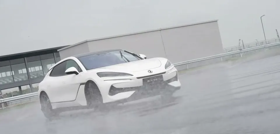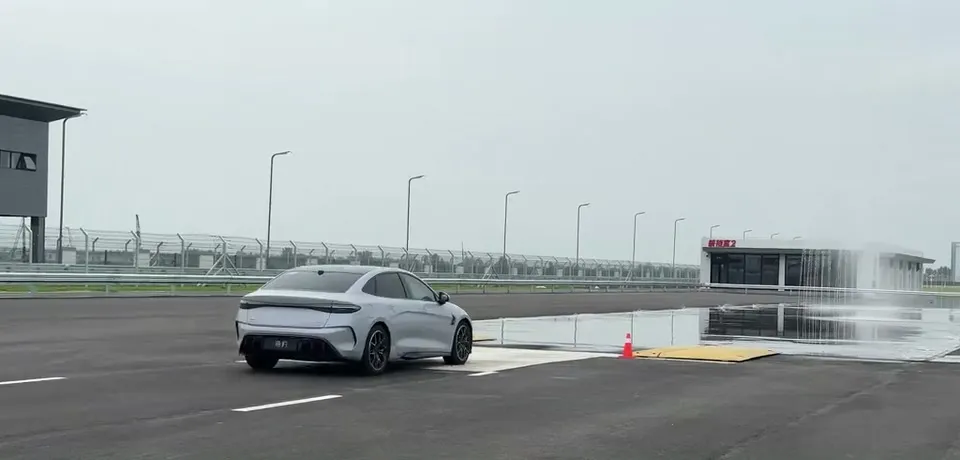 仰望Z9GT在湿滑路面行驶,展示车辆性能