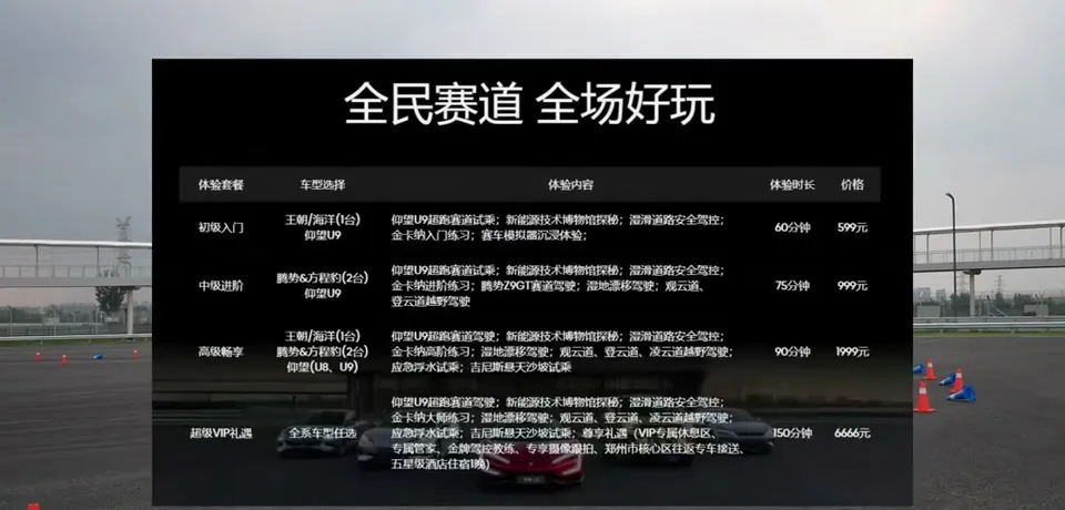 比亚迪郑州赛车场体验套餐价格展示,599元起