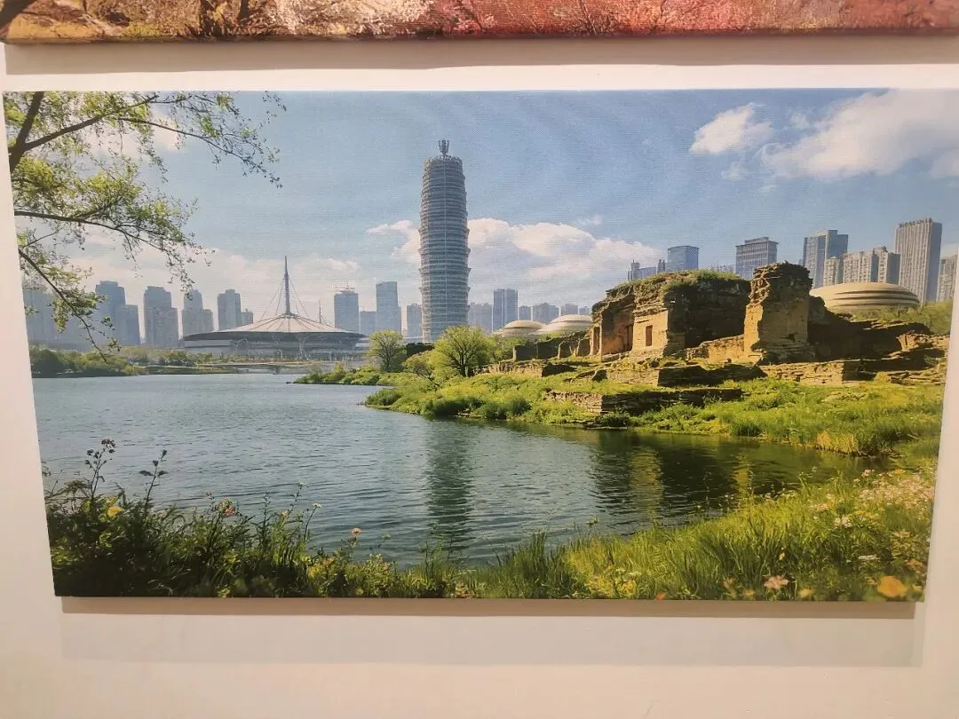 第一张图片里的建筑叫做晴云阁,里面一共四层,每一层都有展览,有绘画,摄影,剪纸,陶瓷拓字,年画,我最喜欢摄影和剪纸,很好看。