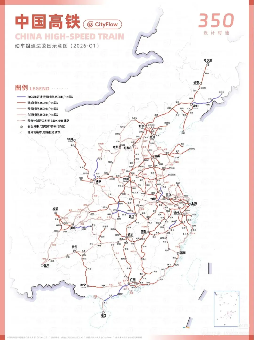 中国350时速高铁网图 ©小红书 仅供参考