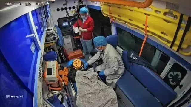 次日清晨6时,救护车抵达当地医院。转运医师与当地医护细致交接,全面评估患者:颅内压16-18mmHg,心率、血氧基本稳定,气道有少量黏痰。团队轻柔完成患者平移、管路固定、双静脉通路建立,严格保持床头抬高30°,避免术侧受压。上午8时,返程救援正式启动。