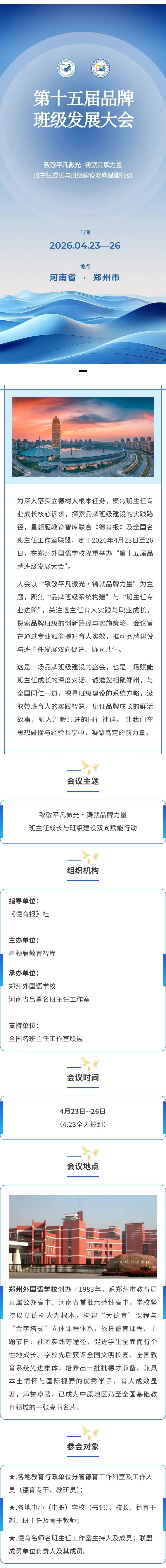 >【4.23-26郑州外国语学校】|第十五届品牌班级发展大会