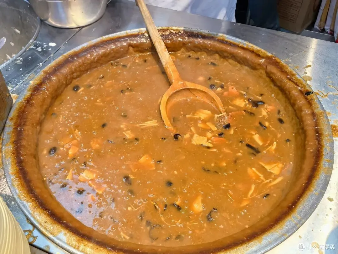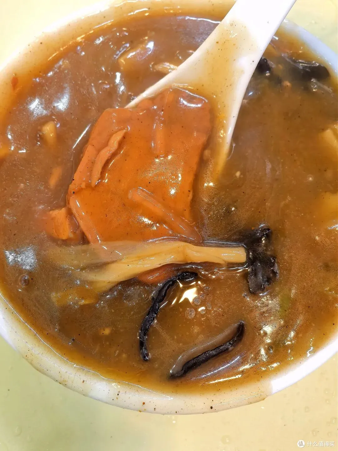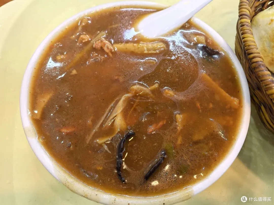 在我喝过的所有胡辣汤里,算优秀,但谈不上顶级。他家的汤底是比较醇厚的,肉香还是能很清晰的感觉到,而且肉有一部分都已经炖化了溶在汤里,这是我喜欢的,不过一口下去会感觉他家下料挺重,香料味尤其是大料很突出,有些用力过猛的感觉。
