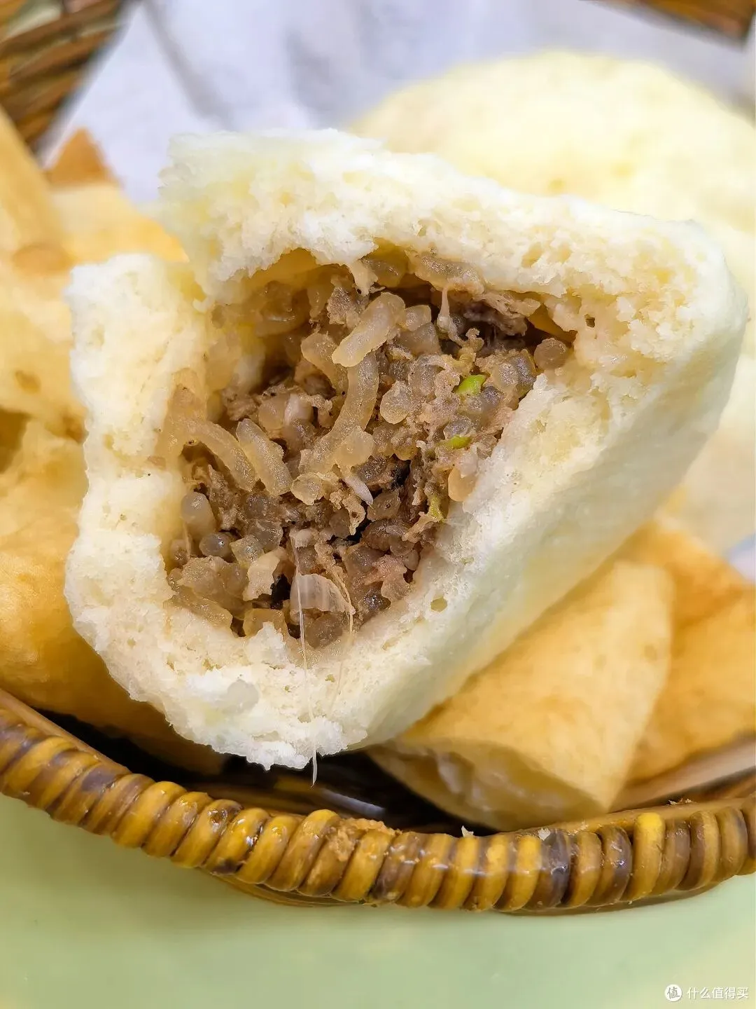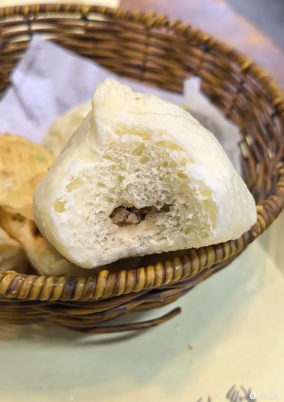 个头挺大,一元一个不算贵,面皮比较适中,口感蓬松,馅料非常一般,牛肉少,粉条多,且放了大量牛油充数,导致粉条都是糊在一起的不爽利,只能刚出锅趁热吃,遇冷凝结后将会非常难吃。