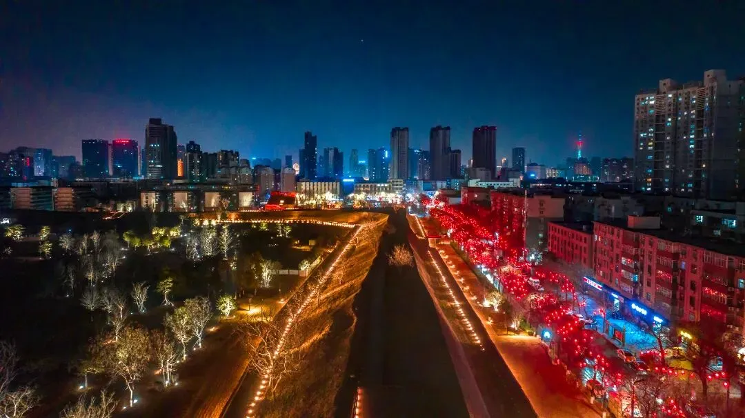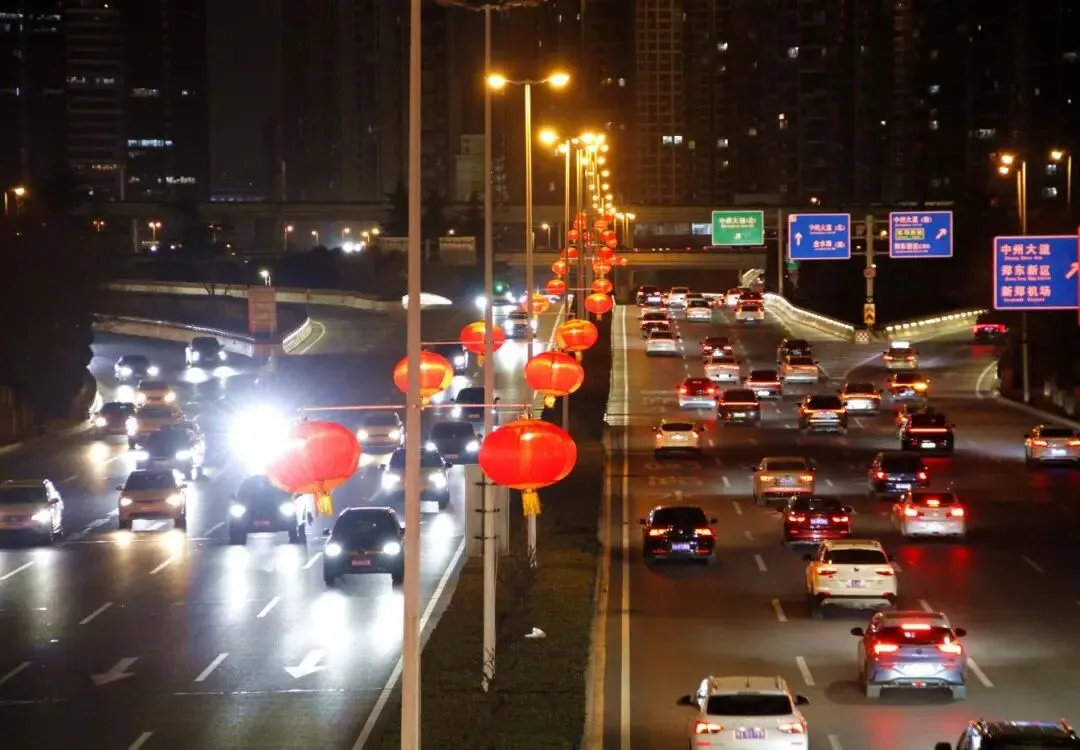 此刻的郑州街巷,大红灯笼高高挂起,特色彩灯装点着夜幕,绿化小品透出融融春意,户外大屏与楼体暖光交相辉映,流光溢彩中涌动着浓浓的年味。