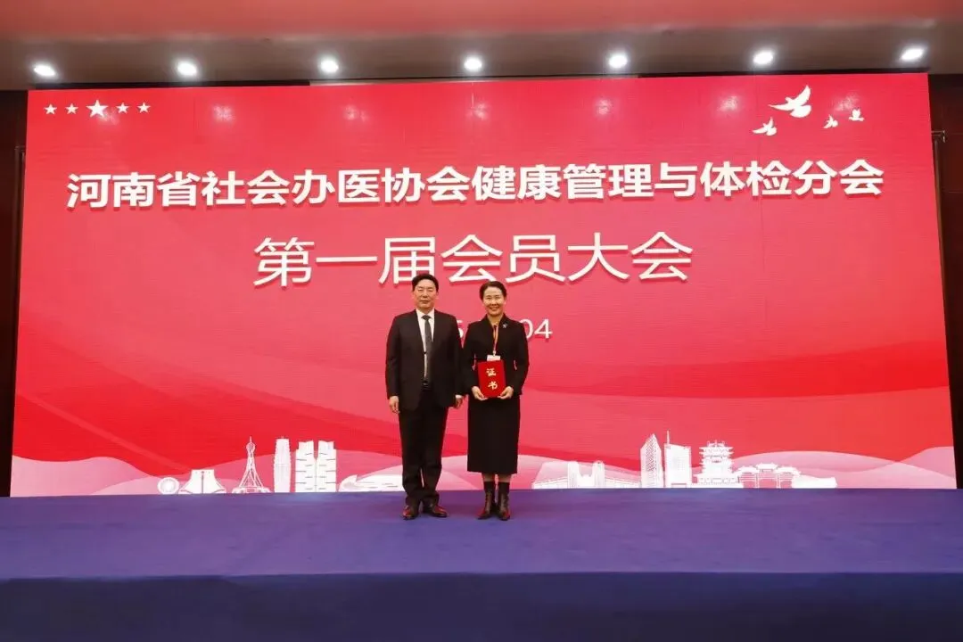 在河南省社会办医协会换届大会上,我院院长贺明霞当选副会长,同时成立健康管理与体检分会,贺明霞院长当选会长,李乐主任当选副会长兼秘书长。