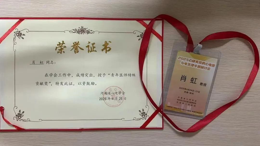 在河南省心电学会主办的“2025心律失常的心电图与电生理专题研讨会”上,我院心肺功能科团队荣获三等奖,肖虹主任被授予“青年医师特殊贡献奖”。
