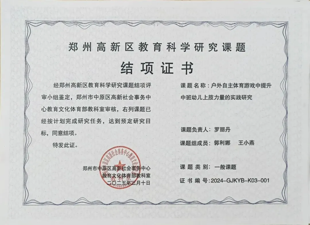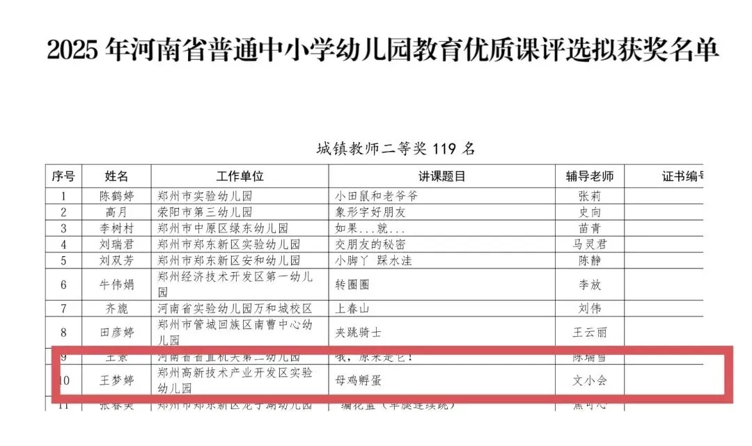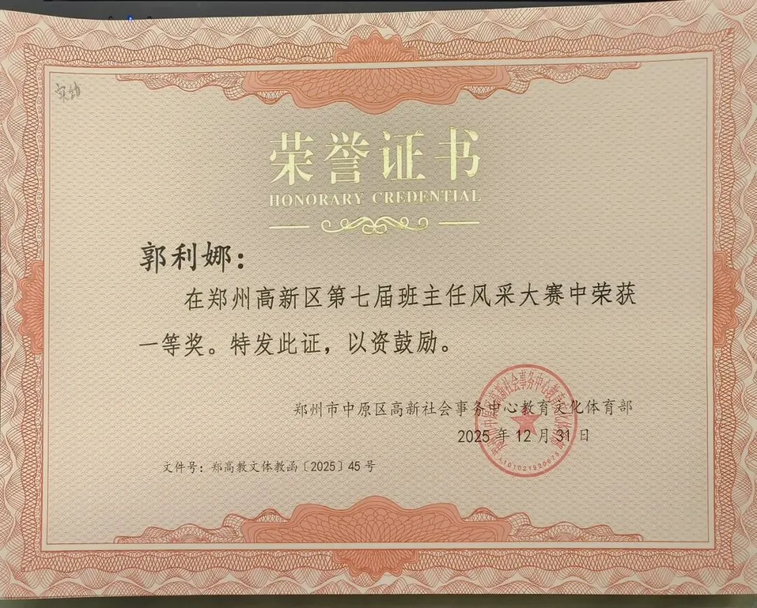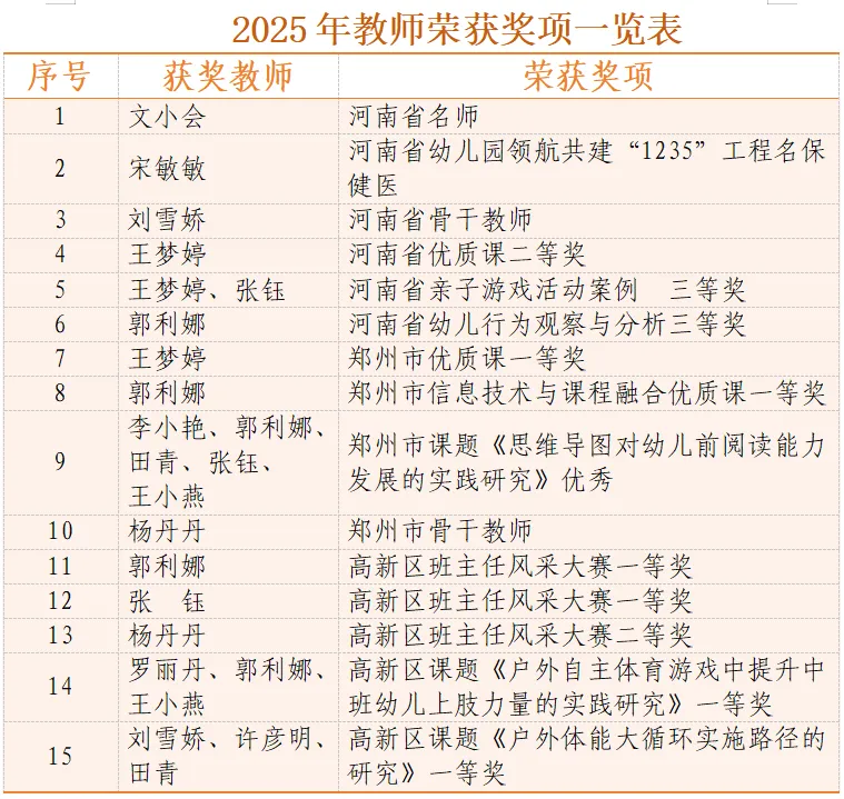 1人获评河南省名师,1人获评河南省领航共建“1235”工程名保健医,2人分获省级、市级骨干教师,7人次在省级、市级基本功展示、优质课、班主任风采大赛中斩获奖项;市级课题1项获评优秀等级结项,区级2项课题荣获一等奖。