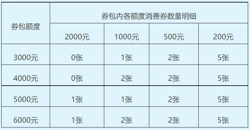 (四)电子消费券券包由200元、500元、1000元和2000元面额的单张消费券组成。