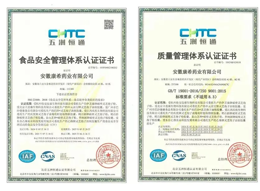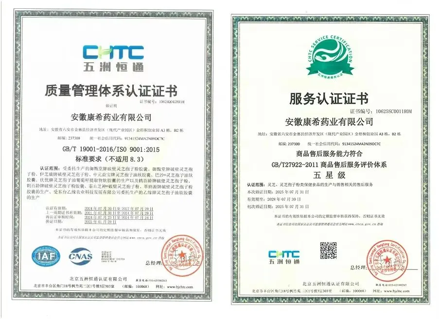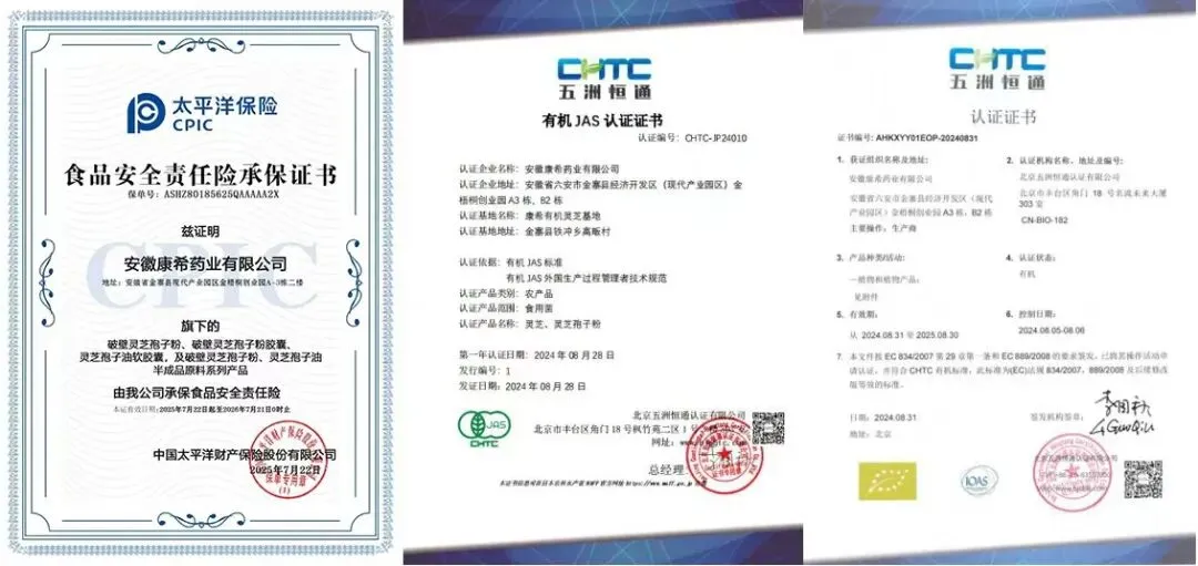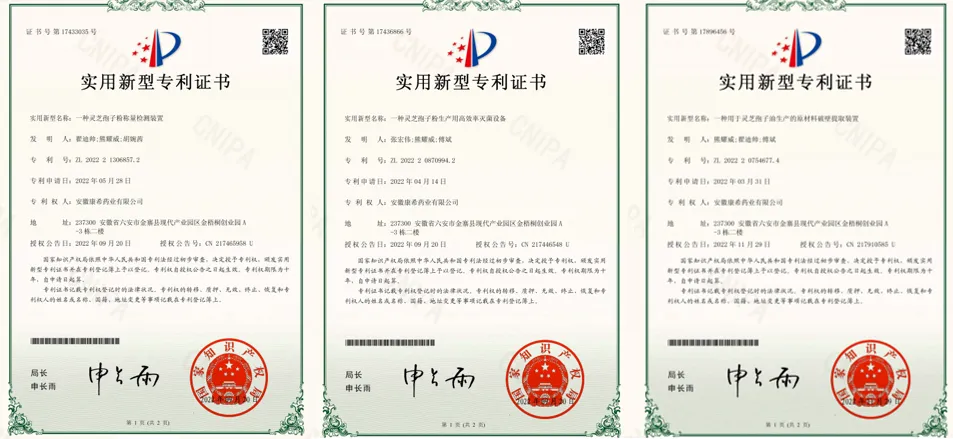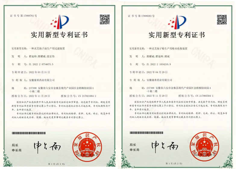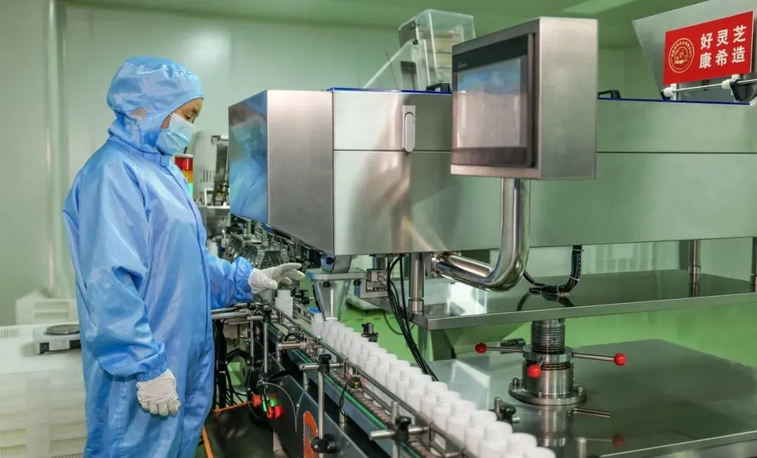 安徽康希药业坚持生产工艺的研发创新来提升产品品质。自研灵芝孢子油二次提纯"499"工艺灵芝孢子粉装袋自动称重踢废系统、瓶装线自动称重踢废系统、瓶装线铝箔封口质量检测系统、视觉识别机器人自动数小包生产线等自动科技生产线,目前已成为同行业内的品质标杆。