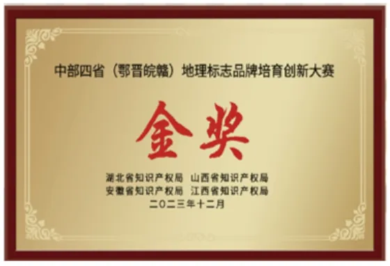 获中部四省(鄂晋皖赣)地理标志品牌培育创新大赛金奖