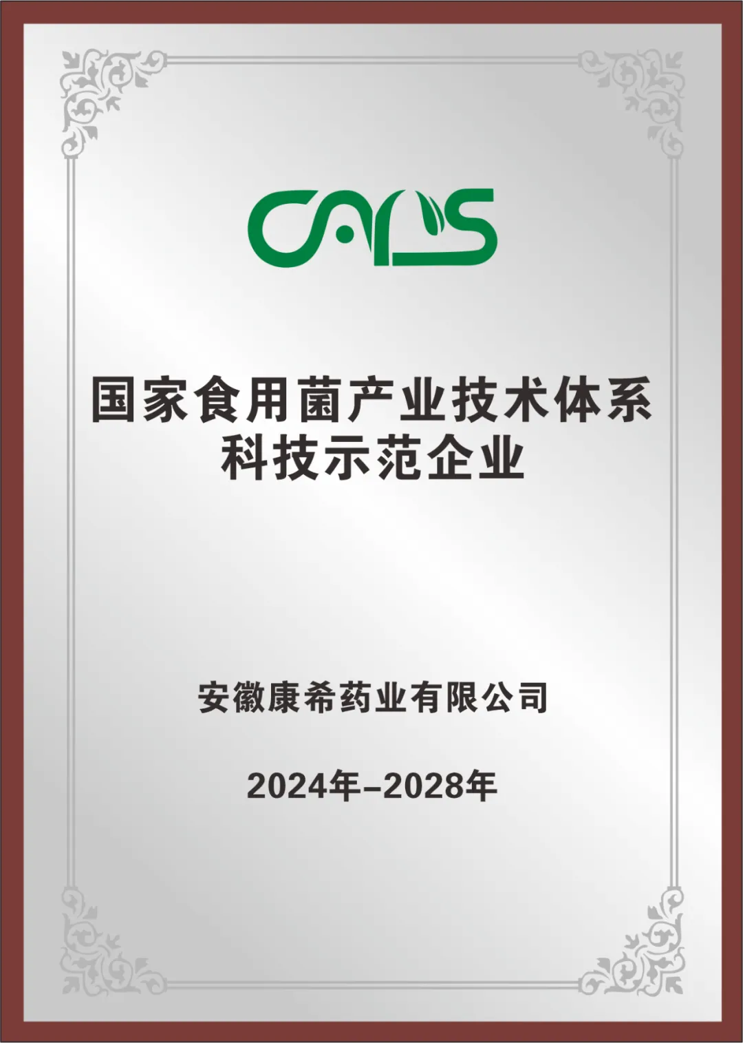 安徽康希药业在国家食用菌产业技术体系十四五“三新”交流会获得国家食用菌产业技术体系科技示范企业