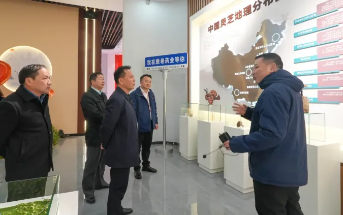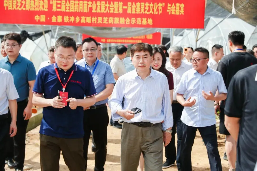 2023年全国第三届药用菌大会中国食用菌协会会长高茂林、上海市农业科学院食用菌研究所所长张劲松一行考察康希药业灵芝文化展厅、铁冲乡高畈村灵芝药旅融合示范基地