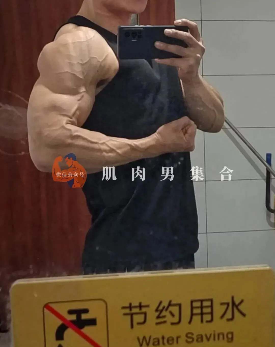 最让人印象深刻的,是他对着镜子展示肌肉的样子。他会稳稳站定,深吸一口气,全身肌肉瞬间绷紧,每一寸线条都立刻变得清晰又夸张。尤其是手臂,二头肌高高隆起,像一颗结实的圆球,硬得像铁块;三头肌向外撑开,线条棱角分明,粗壮却不失美感,手臂整体围度非常惊人,一看就是长期大重量训练堆出来的实力。