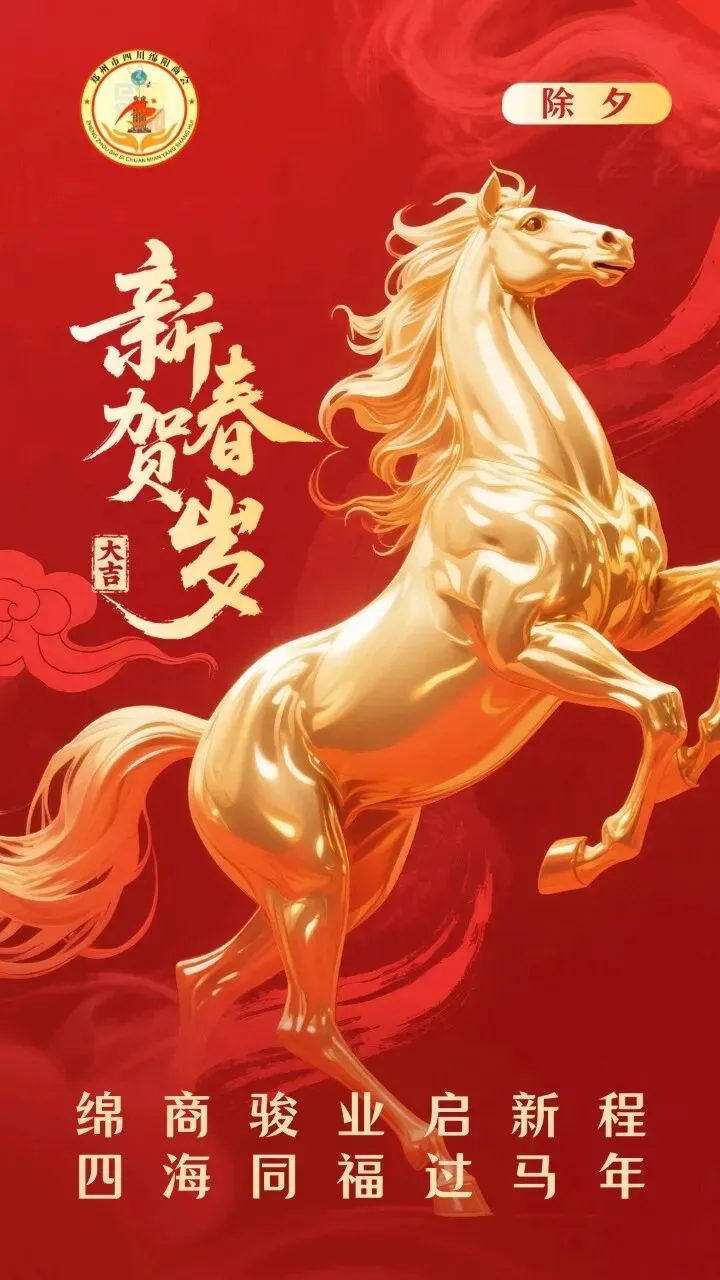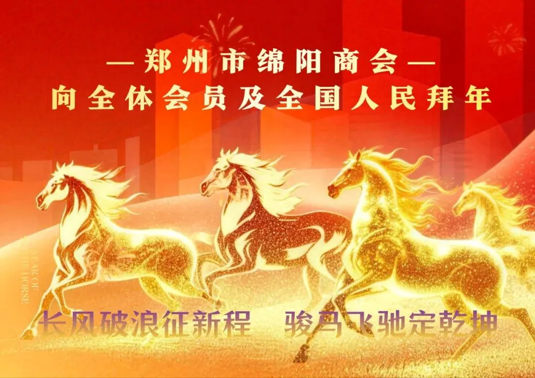 当丙午马年的钟声即将响彻神州,我们挥别了砥砺奋进的乙巳蛇岁,迎来了充满希望与豪情的2026年。值此除夕团圆、万家灯火的美好时刻,郑州市绵阳商会谨向长期以来关心、支持商会发展的各级领导、各界朋友,向全体会员家人,以及远在千里之外的绵阳父老乡亲,致以最诚挚的新春问候和最热烈的节日祝福!