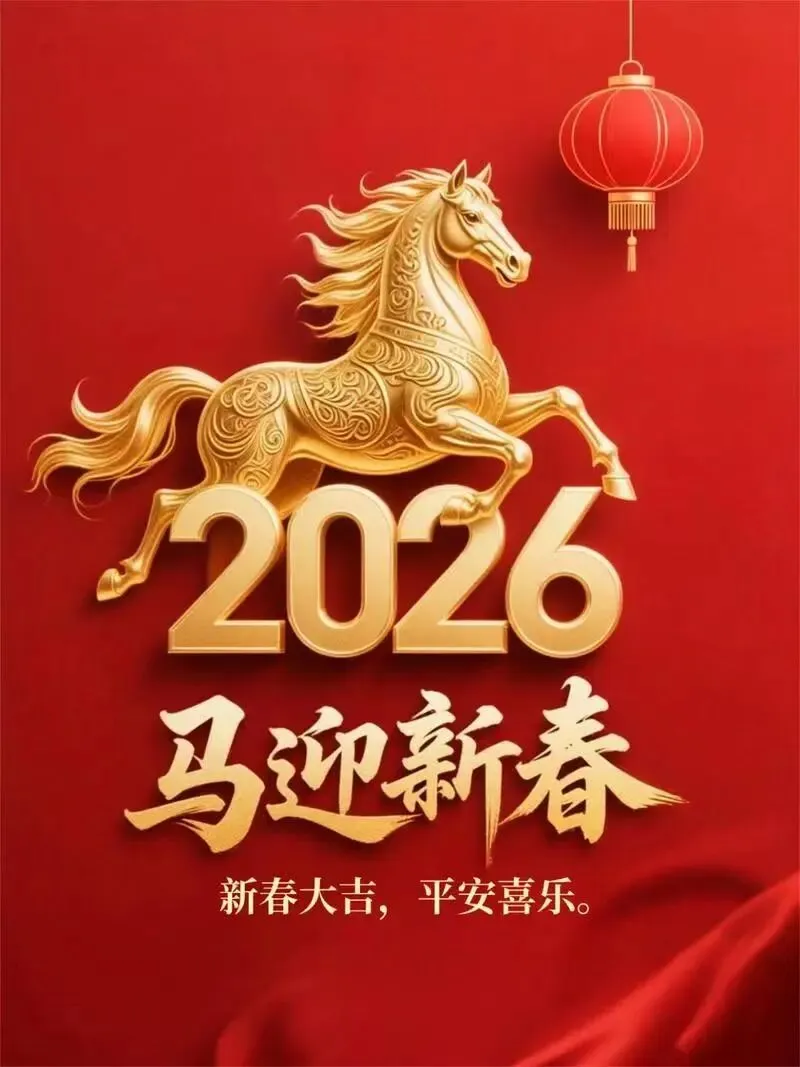 桃符红艳艳,踏马吉祥来。