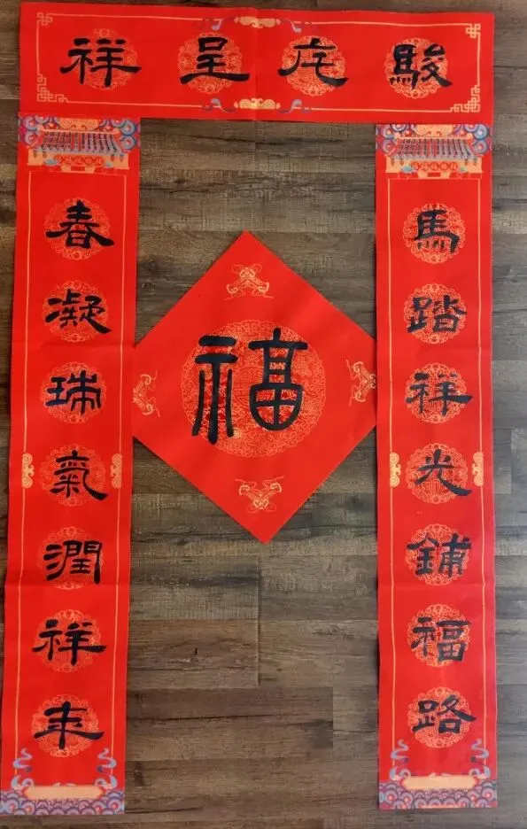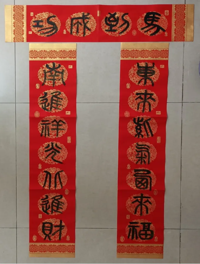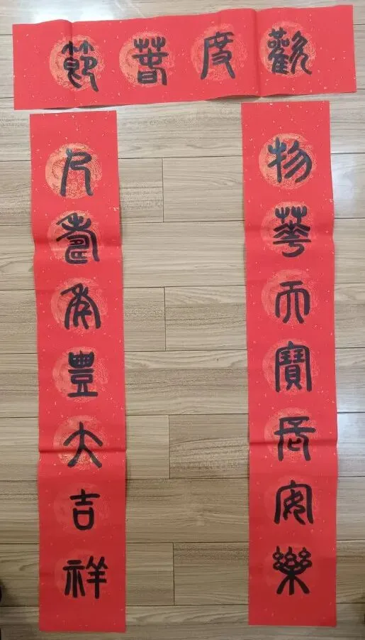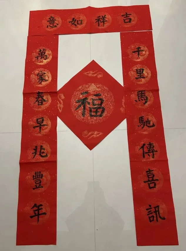 万千吉语写红联,几度东风换旧年。
