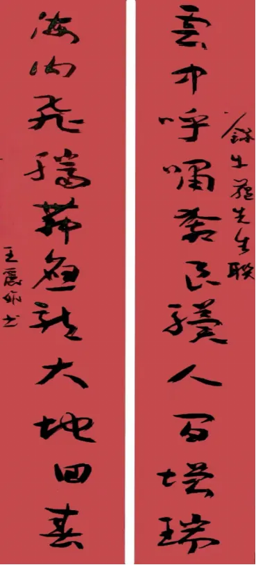 书法:王丽娟 撰联:牛蕴 云中呼啸,奔良骥人间增瑞。海内飞腾,舞应龙大地回春