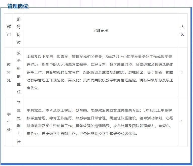 为适配学校高质量发展节奏,面向社会诚聘英才!
