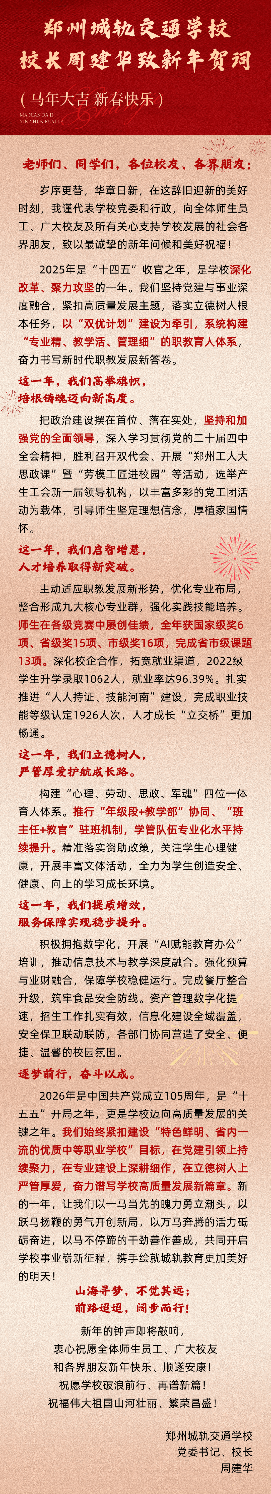 郑州城轨交通学校校长周建华致二〇二六年新年贺词!