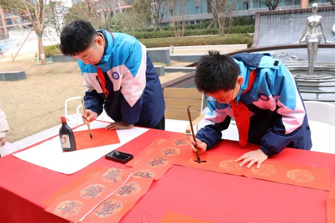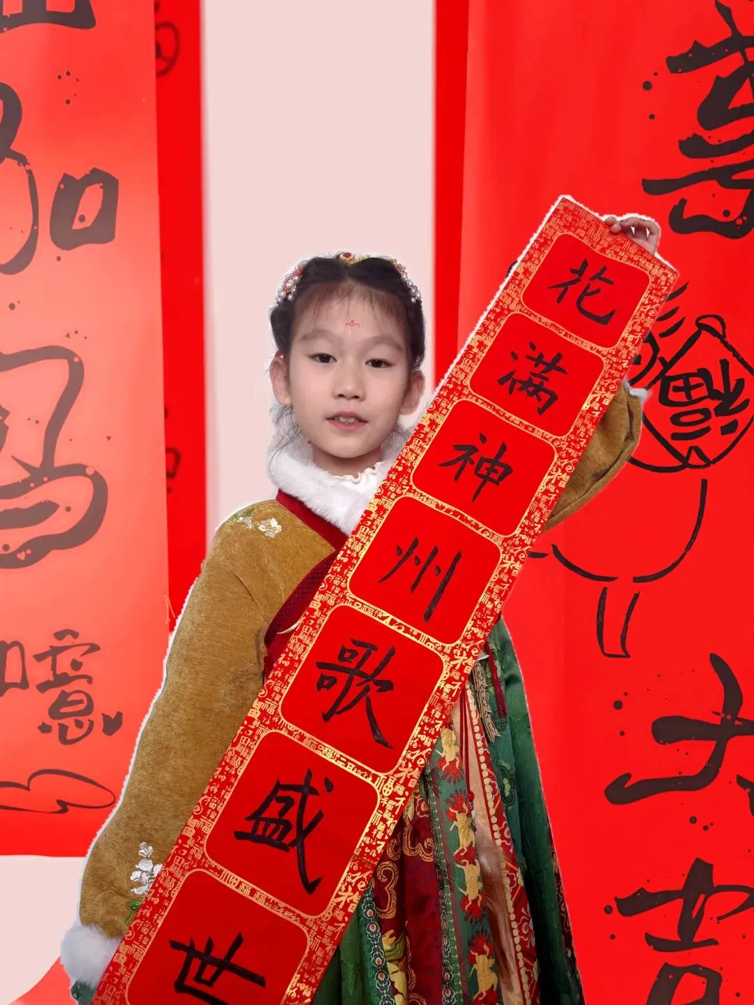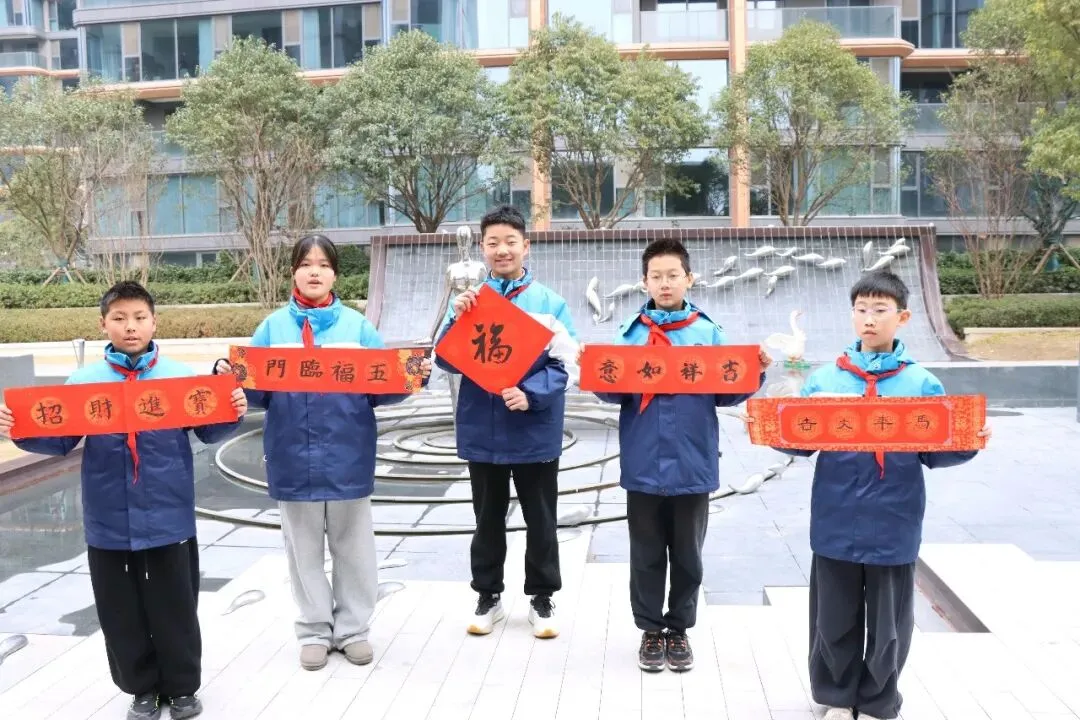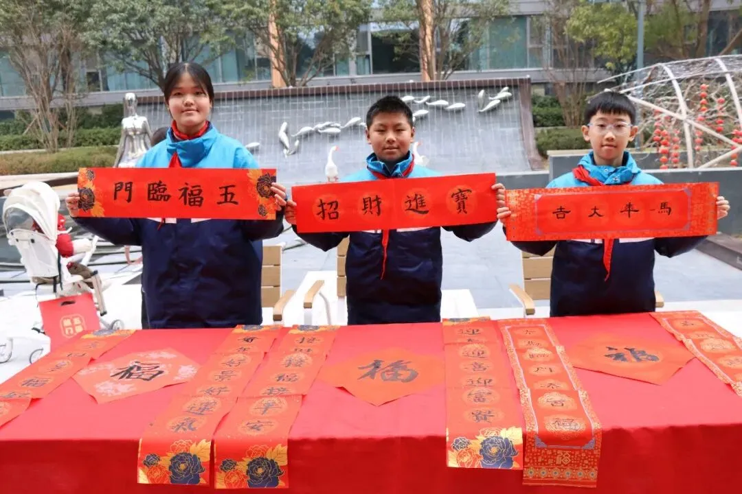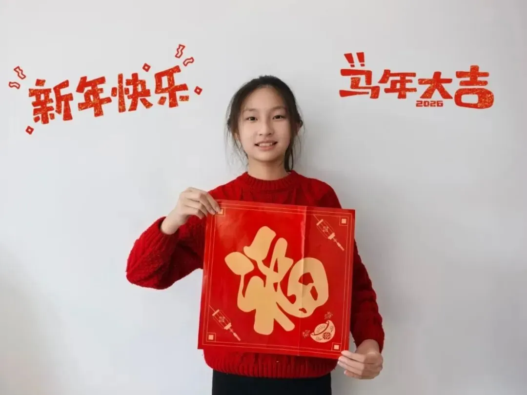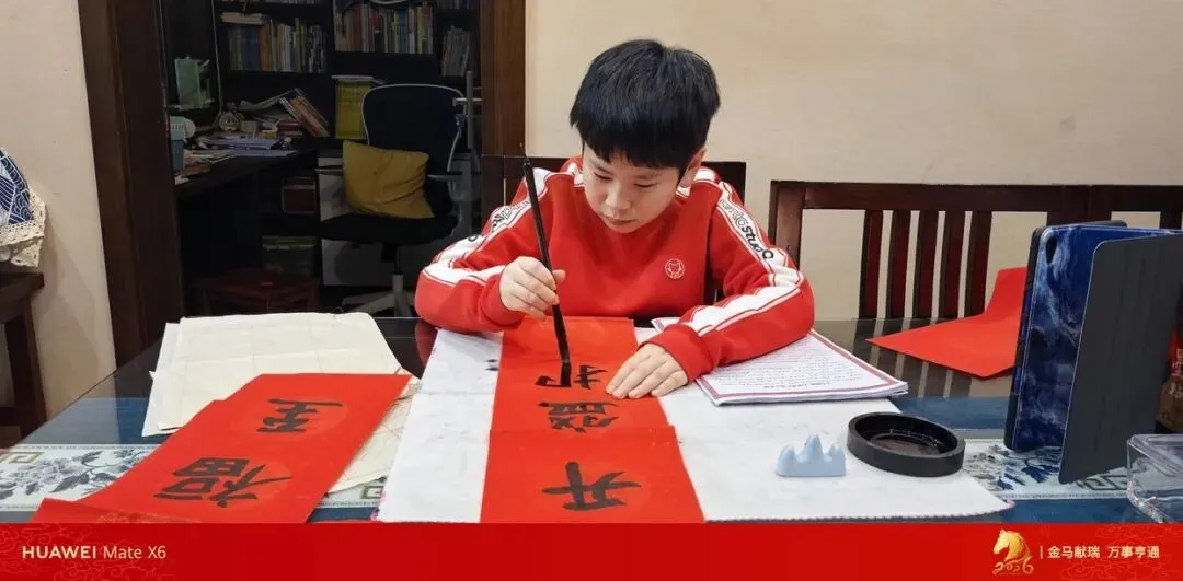 笔墨挥毫间,福气自然来。延续写春联、送福字的传统,孩子们结合马年特色潜心创作,或书写“骏马奔腾开锦绣,春风浩荡展宏图”等吉祥春联,或勾勒简约可爱的马形福贴,或挥毫写下大气磅礴的“福”字。一笔一墨、一横一竖间,不仅展现了对传统书法的喜爱,更传递着对新年的诚挚祈愿,让浓浓的年味随着墨香弥漫在每个家庭。