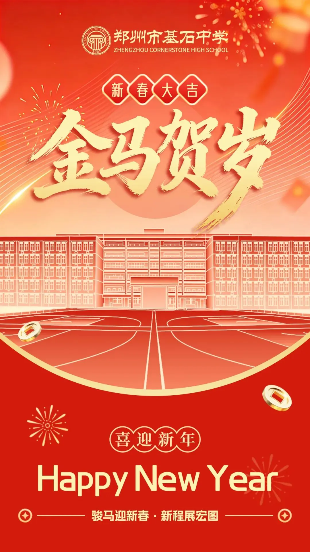 旧岁已展千重锦,新年再进百尺竿。2026,让我们以梦为马,不负韶华;让我们携手并肩,共赴新程!祝愿伟大的祖国繁荣昌盛,国泰民安!祝愿郑州市基石中学蒸蒸日上,再谱华章!