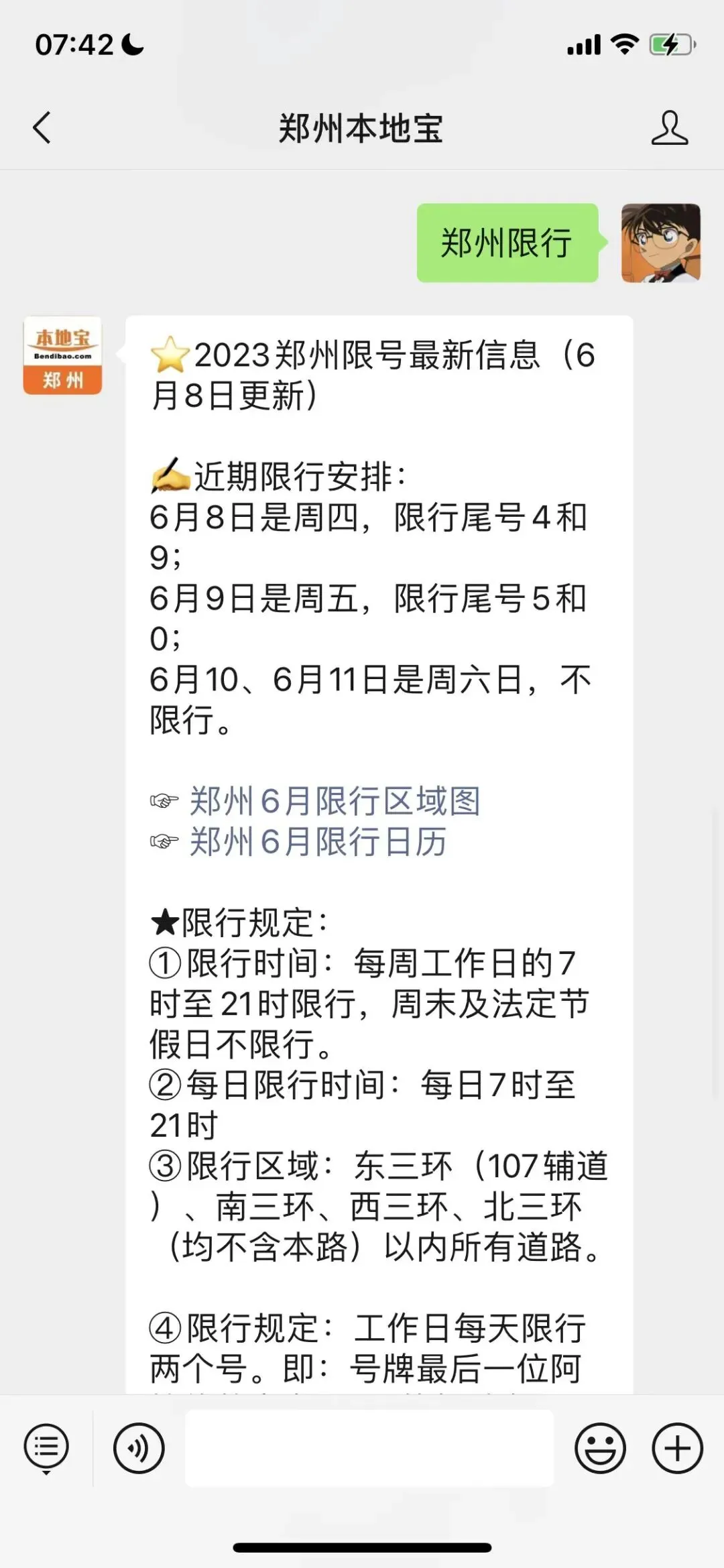为了方便各位车主了解每日限行信息,我们会为大家每日更新并整理了查询入口:点击下方链接,关注郑州本地宝公众号;