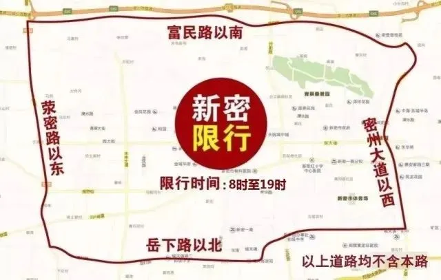 2.限行区域:城区荥密路以东、密州大道以西、富民路以南、岳下路以北(以上道路均不含本路)的市区道路。