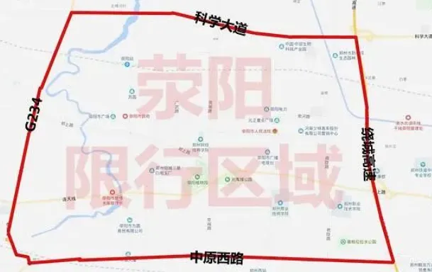 2.限行区域:G234以东、绕城高速以西、科学大道以南、中原西路以北区域内的所有道路(不含G234、科学大道、中原西路)。