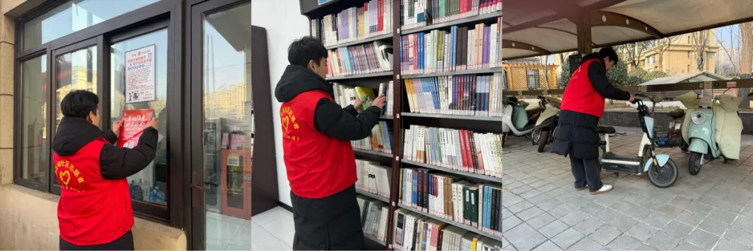 在假期中,我身穿红马甲,投入到社区的服务工作中。第一天,我就负责在社区服务中心的公共区域张贴“举报隐患,共享安全”的主题海报,并向过往的居民叔叔阿姨传递电动车进楼梯的危害,这份任务让我觉得特别自豪,为大家的安全出了一份力。同时,我还参与了社区共享书吧的整理工作,对书架上的各类书籍进行细致整理,将零散书本按类别归位,让书架变得整洁有序,方便居民朋友们快速找到想要的读物。我还有件每天都要做的工作,就是排查社区非机动车棚的安全隐患,并对随意停放的车辆进行统一规整。这样做是为了清理出通畅的通道,消除了安全隐患,为大家营造整洁、安全的停放环境。