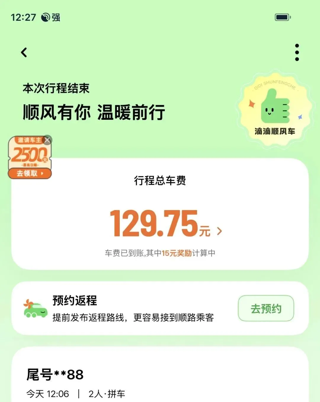 这个新郑的顺风车乘客是2人,起点正好在我回老家的路上,终点离我们就5公里。