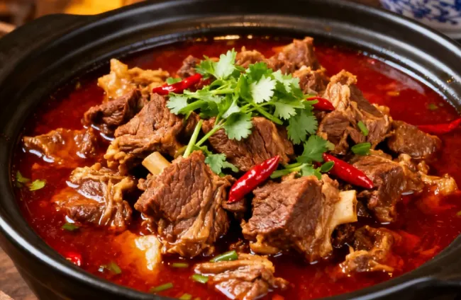 重点说说这红焖羊肉。它不是火锅,也不是单纯的炖菜。羊肉得先过油,再加红枣、枸杞慢炖,直到肉烂软香。上桌时,那是先吃肉,肉是红亮的,皮是糯的,咬一口,汁水在嘴里滋啦一下冒出来。肉吃完了,再加汤涮菜,那汤底浓缩了肉的精华,煮把面条进去,吸饱了汤汁,神仙来了都不换。