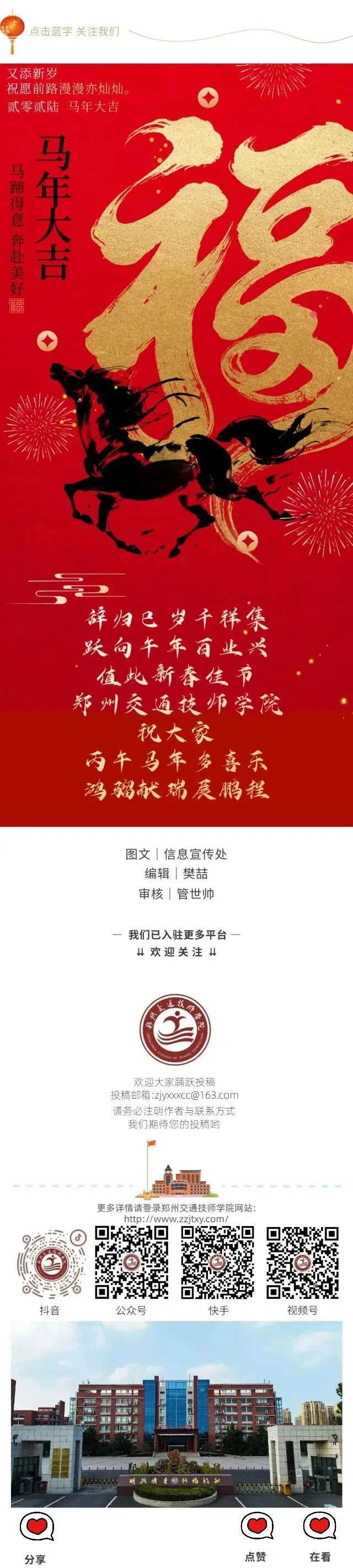郑州交通技师学院祝大家丙午马年新春快乐!