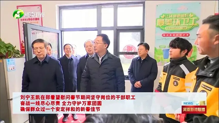 昨天,农历除夕,省委书记刘宁、省长王凯在郑州市看望慰问春节期间坚守岗位的环卫工人、外卖小哥、执勤民警、消防队员、一线工人等,并调研检查不停工、不停产重点项目建设和企业生产情况,代表省委、省政府向奋战在一线的干部职工致以新春问候和美好祝福。