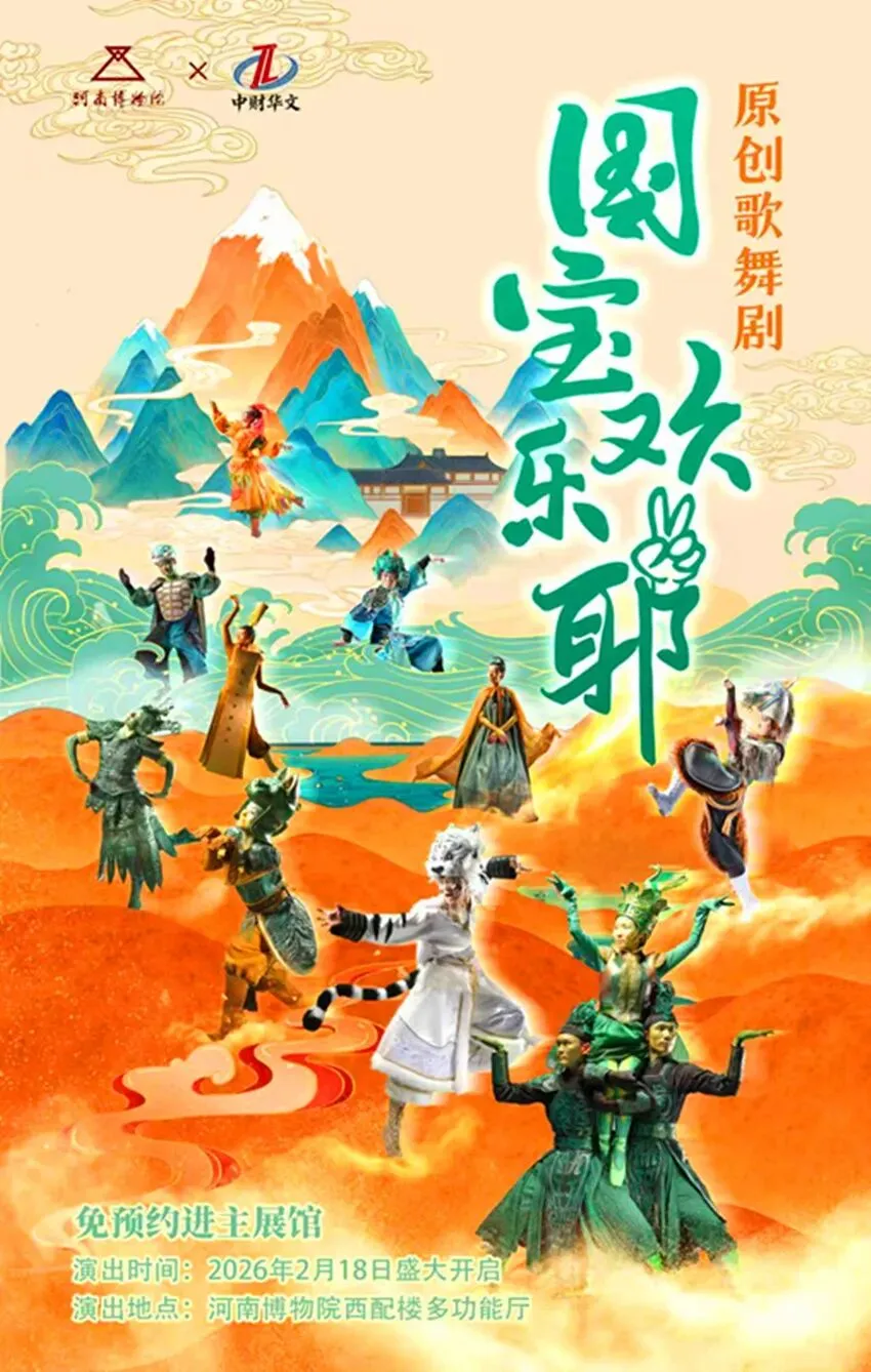 原创沉浸式互动歌舞剧《国宝欢乐耶》明天将在河南博物院正式首演。本剧以45分钟的奇幻叙事,串联起绿釉陶狗、三彩马、贾湖骨笛、妇好鸮尊、莲鹤方壶五位 “文物主角” 的冒险之旅。