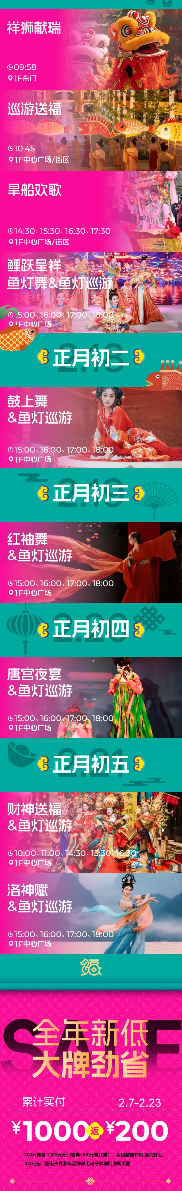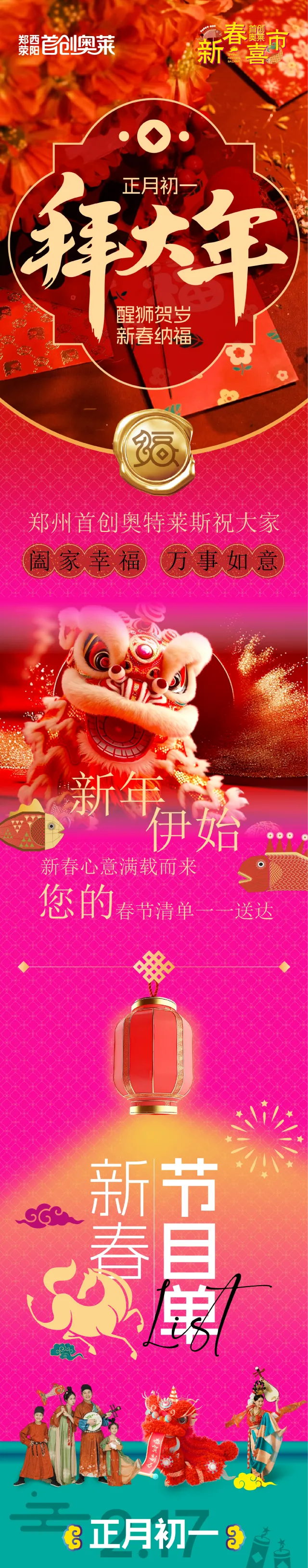 新春快乐!郑州首创奥莱给您拜年了!初一到初五!精彩演出轮番上演!好戏不停!更有全年新低价!满返/团券福利!