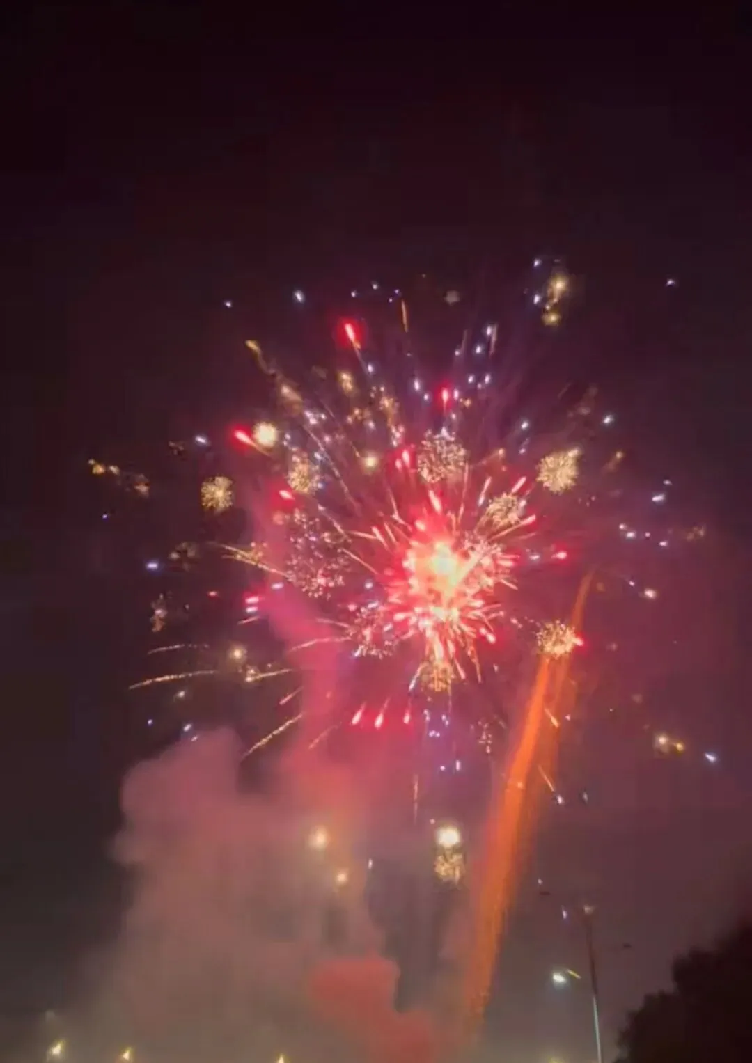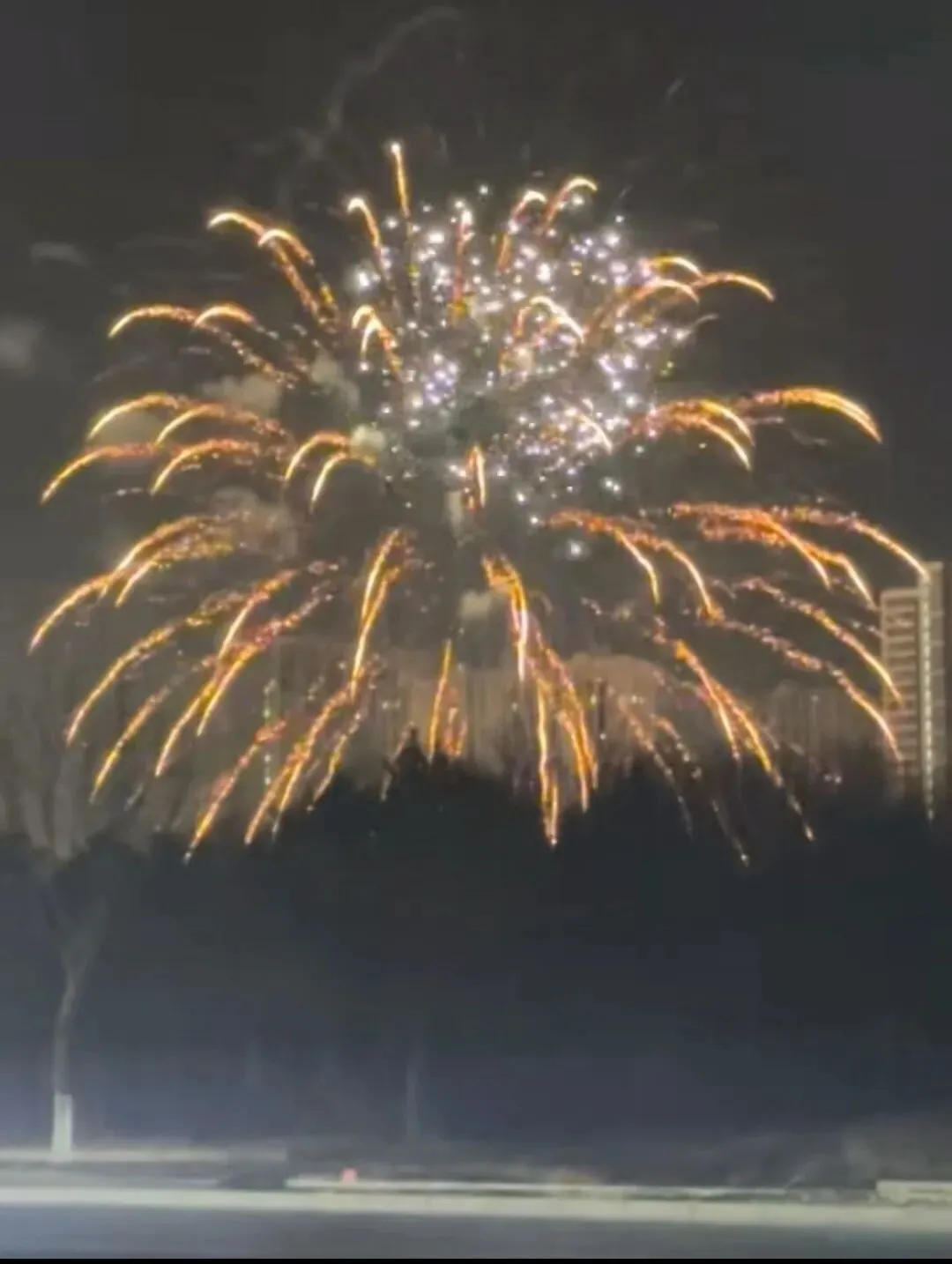 绚丽多彩的烟花照亮了除夕的夜空,也预示着新的一年会有好运。