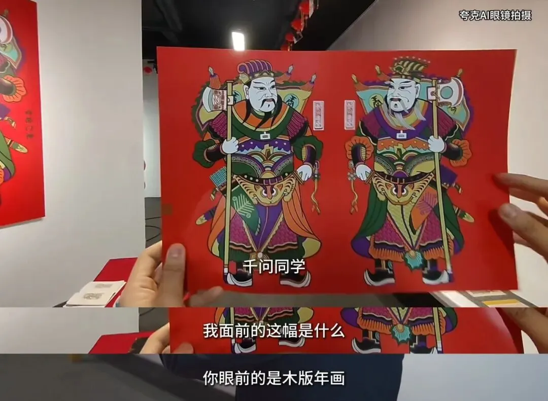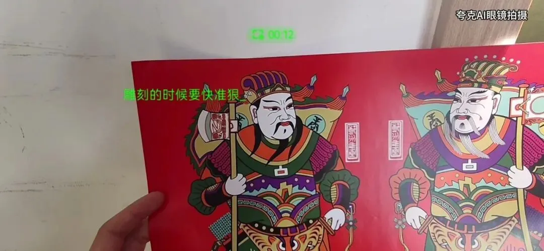 任涛与木版年画结缘,已近三十年。可如今,贴年画的人家越来越少。年轻人的门上,更多是卡通贴纸或是干脆不贴。传统年画的生存空间,被挤压得越来越窄。面对这种变化,任涛不禁思考:如何让年轻人愿意多看年画一眼?年画在传统文化中代表着避灾和祈福的,今天靖宇也亲自体验了一把年画刻板。这看起来就不简单,害怕忘记知识点,他还特意让夸克ai眼镜帮忙将知识点实时记录了下来。
