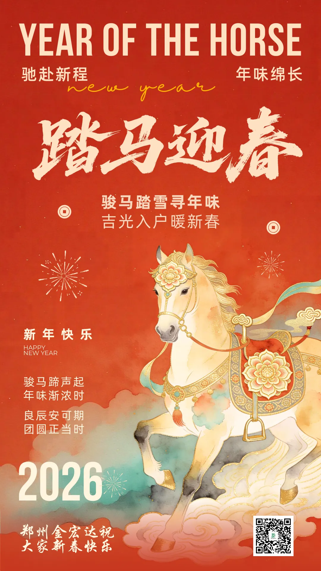 郑州金宏达愿新老挚友,2026皆能乘马年之势,一日千里;聚本草之力,共筑安康!