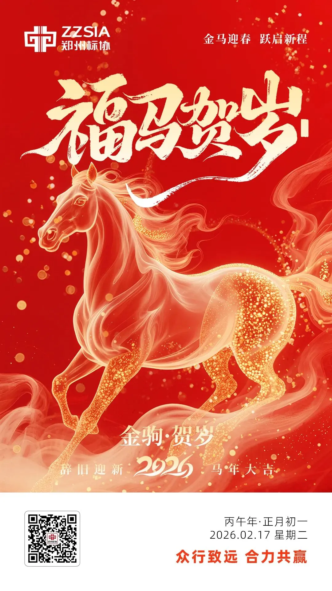 律回春渐,新元肇启。值此2026丙午马年大年初一,郑州标协秘书处向长期以来关心支持协会发展的各级领导、会员单位及行业同仁,致以最诚挚的新春问候!愿大家在新的一年里,如骏马奔腾,乘势而上;守正创新,共筑行业新标杆!祝大家龙马精神,宏图大展,阖家幸福,马到成功!🧧