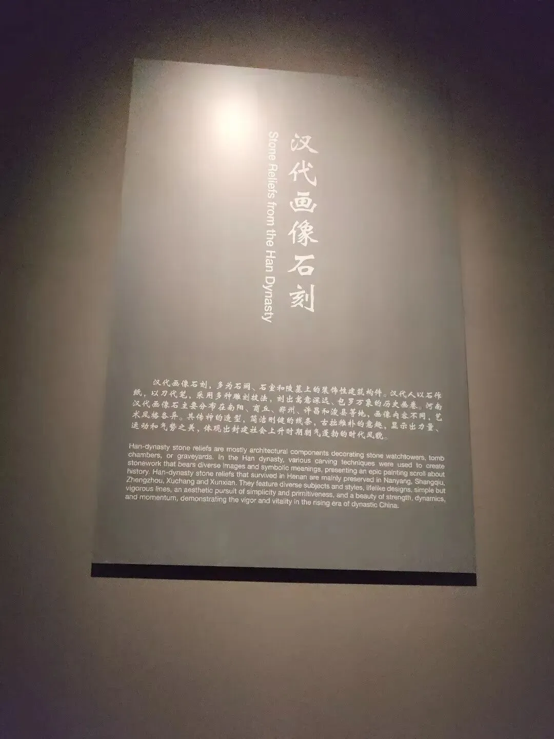 分为汉代画像石刻、陵墓石雕、历代墓志、佛教造像四个单元,展现了中原地区自汉至清石刻艺术的发展历程与非凡成就。重点文物包括熊舞画像石、四人头神兽画像石、河伯出行画像石、戏猴白虎铺首衔环画像石门、白虎铺首衔环双狗画像石门、石狮子、司马悦墓志、苏适妻墓志、王尚恭墓志、天王菩萨造像、观音菩萨造像、弥勒造像碑、丁郎合家造像。