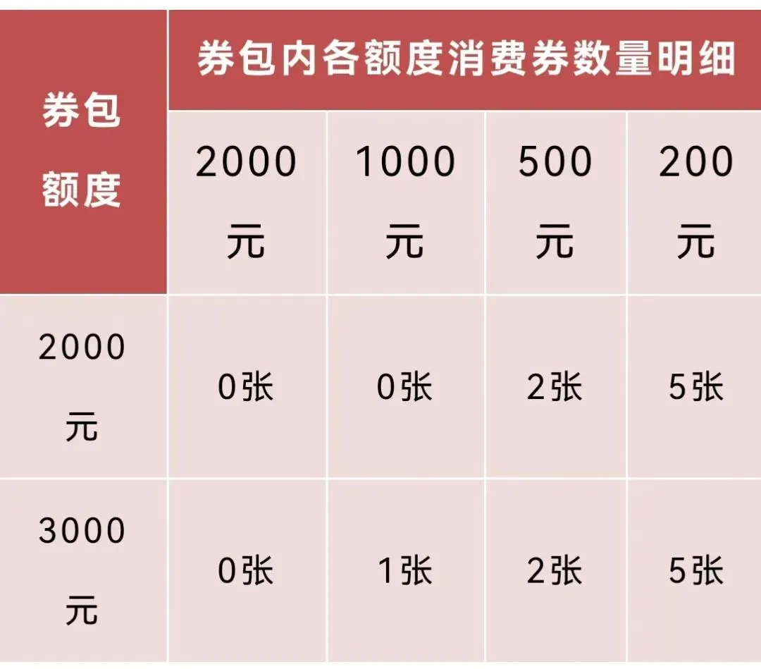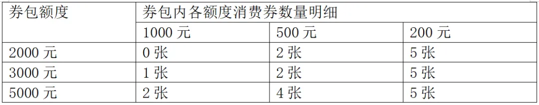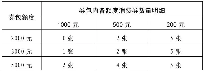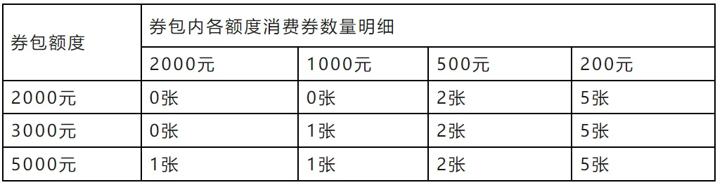 (二)电子消费券券包由200元、500元、1000元和2000元面额的单张消费券组成。