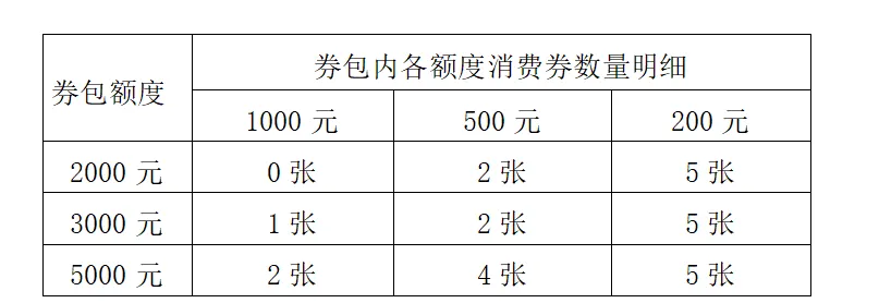 电子消费券券包由200元、500元和1000元面额的单张消费券组成: