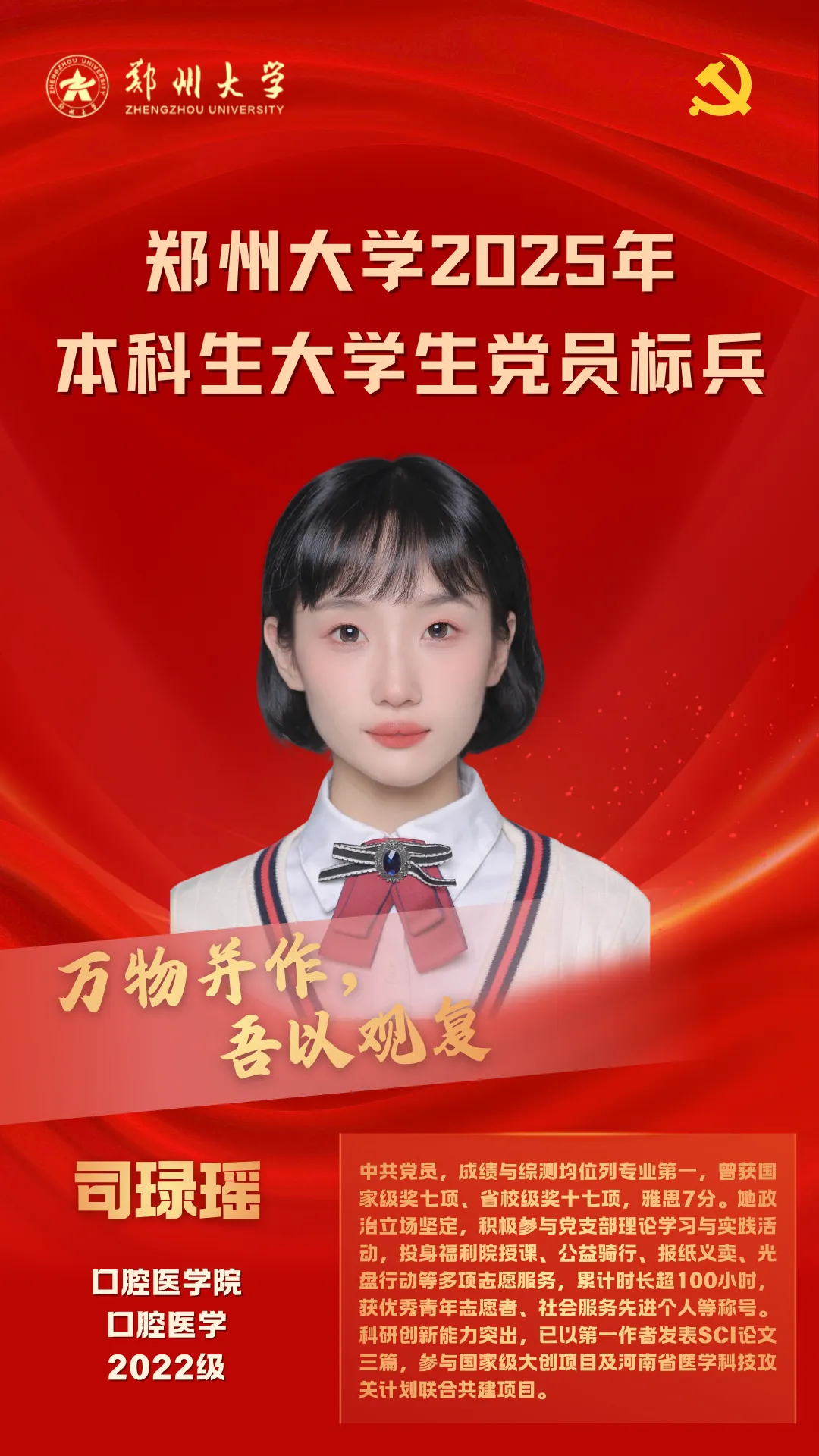 2022年高考结束,司琭瑶满怀憧憬地将口腔医学专业列为自己的首选志愿。然而,就在那决定未来的关键时刻,命运却以1分之差,让她与梦寐以求的口腔医学专业失之交臂。尽管失望的阴霾笼罩心头,但她内心的热忱并未因此熄灭。终于,在大一下学期的转专业笔试面试中,司琭瑶以总成绩第一的成绩,成功转入郑州大学口腔医学院,这个“梦开始的地方”。