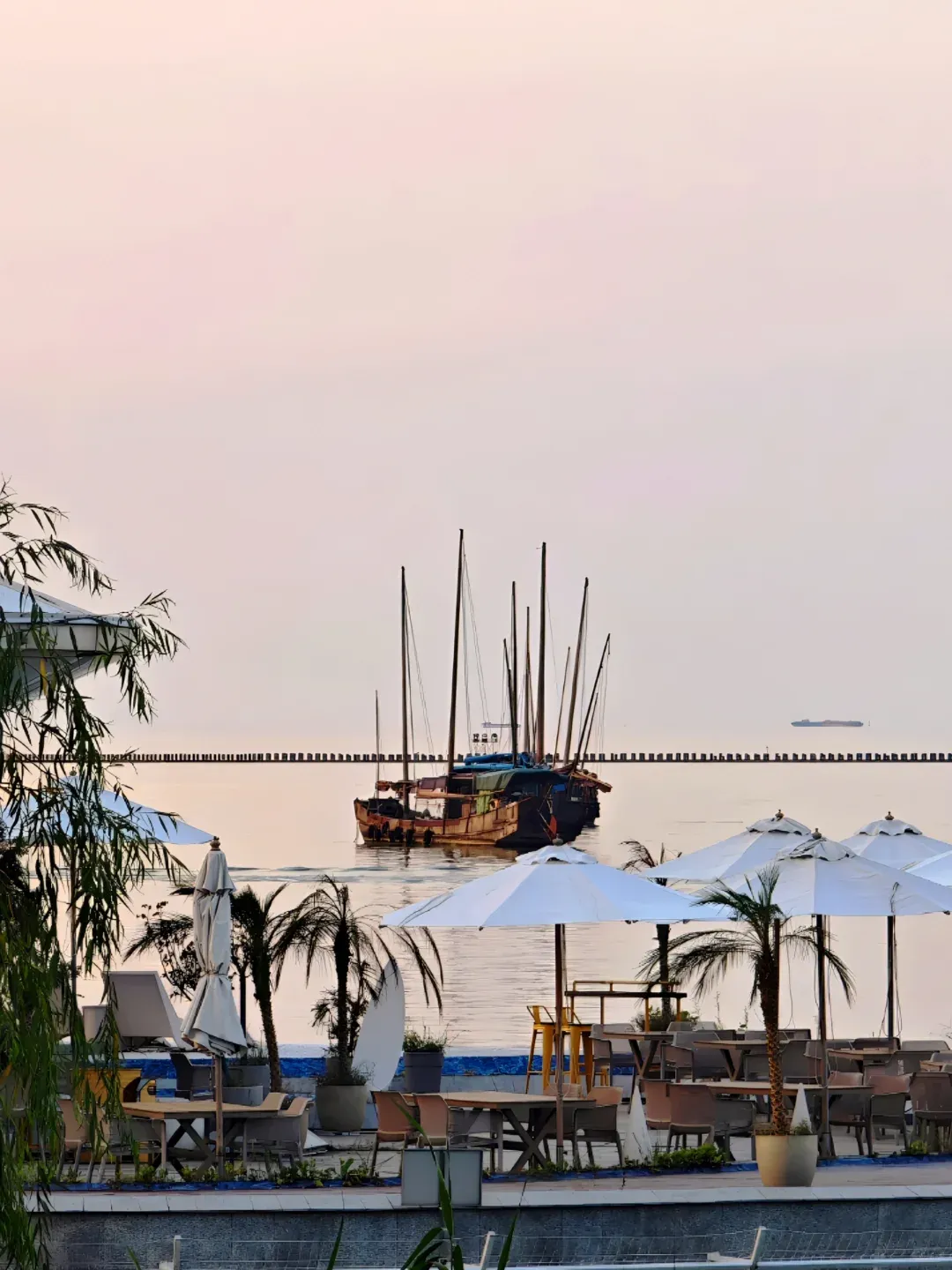 「渔人码头」傍晚去太湖边。 看一眼那个著名的“马桶圈酒店”(喜来登温泉度假酒店)。虽然造型奇葩,但亮灯后的太湖倒影,确实有点科幻感。
