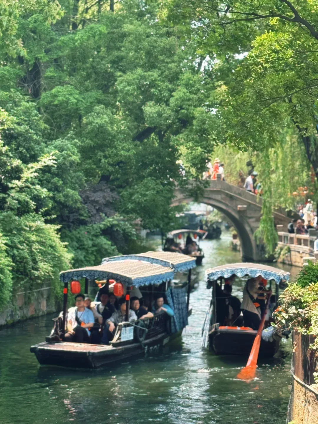 「水上巴士」📍 码头:丝绸码头站 💰 价格:3元/人 ⏰ 时间:30分钟一班 ⭐ 评价:比那种几百块的摇橹船划算太多。 坐着公交船,沿着京杭大运河的支流穿行,看两岸洗衣服的大妈,看斑驳的白墙。
